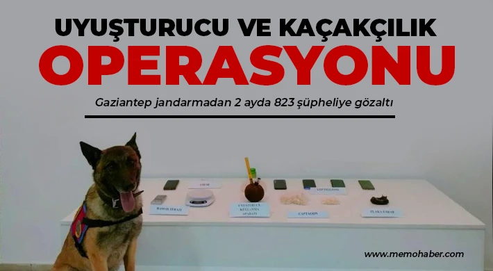 Gaziantep'te jandarma ekiplerince uyuşturucu ve kaçakçılık olaylarına yönelik son 2 ayda yapılan operasyonlarda 823 şüpheli gözaltına alındı. Şüphelilerden 22’si sevk edildiği adli makamlarca tutuklanırken çok sayıda suç unsuru ele geçirildi.
