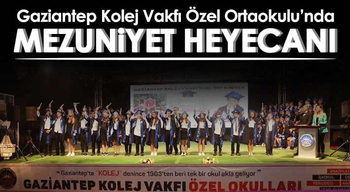 2022-2023 eğitim öğretim yılının sonuna gelindiğinde yılsonu etkinlikleri kapsamında bir birinden renkli etkinliklere imza atan Gaziantep Kolej Vakfı Özel Okullarında mezun olan öğrencilere yönelik düzenlenen balo ve kep törenleri de dikkat çekiyor. Bu yıl GKV Özel Ortaokulu’ndan mezun olan öğrenciler için düzenlenen kep töreninde duygusal anlar yaşanırken öğrencilerin heyecanları gözlerinden okunuyordu. Düzenlenen geceye Gaziantep Kolej Vakfı Mütevelli ve Yönetim Kurulu Üyeleri, GKV Özel Okulları Genel Müdürü İsmet Tiryaki, GKV Özel Ortaokulu Müdürü Seçil Güldemet, idareci, öğretmen ve velilerin yanı sıra çok sayıda davetlinin katıldı. Müzik dinletisi ile başlayan gecede Gaziantep Kolej Vakfı Özel Ortaokulu Müdürü Seçil Güldemet açılış konuşmasını yaparak mezun olan öğrencilere lise yaşamlarında başarılar diledi. Konuşmaların ardından, ulusal ve uluslararası yarışmalarda çeşitli derecelere imza atan ayrıca yıl boyu akademik başarısını devam ettiren öğrencilere Gaziantep Kolej Vakfı Mütevelli heyeti üyeleri tarafından plaketleri verildi.
