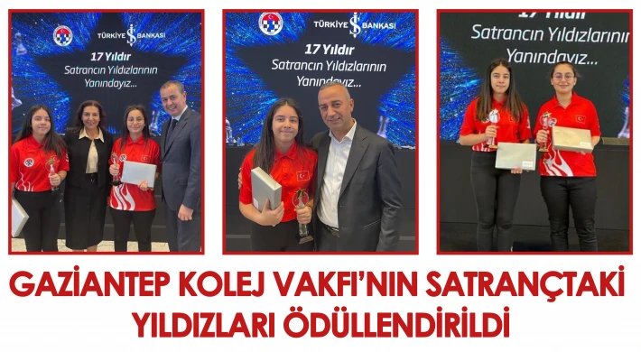 Türkiye Satranç Federasyonu tarafından İstanbul’da gerçekleştirilen "Satrancın Yıldızları" ödül törenine katılan Gaziantep Kolej Vakfı Özel Ortaokulu 6. sınıf öğrencisi Beren Kalyoncu ve Gaziantep Kolej Vakfı Özel Fen Lisesi 10. sınıf öğrencisi Dila Baloğlu başarılarından dolayı ödüllendirildi.