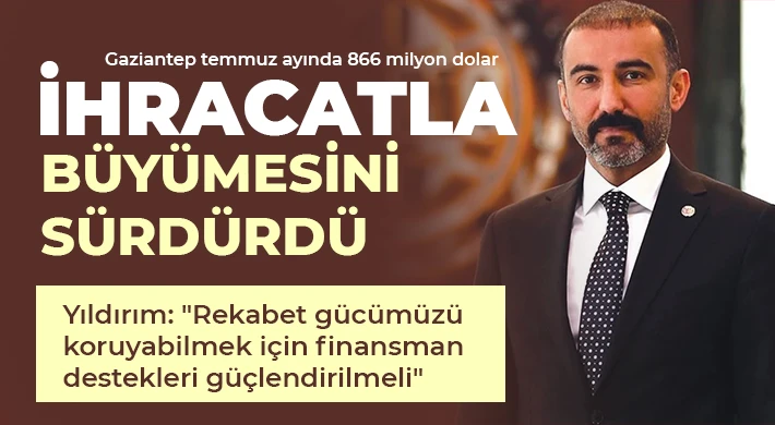 Türkiye İhracatçılar Meclisi (TİM) tarafından açıklanan verilere göre Gaziantep, 2025 yılının Temmuz ayında geçen yılın aynı dönemine göre yüzde 2,7’lik artışla 866 milyon 199 bin dolarlık ihracat gerçekleştirdi. Böylece kent, Ocak-Temmuz döneminde toplam 5 milyar 715 milyon 650 bin dolarlık ihracat hacmine ulaştı.