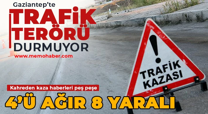 Kazalar, Gaziantep’in Nurdağı ilçesine bağlı Sakçagözü ve Hisar Köyü arasında gerçekleşti. 4 kişi ağır yaralandı. Diğer kaza ise İslahiye ilçesine bağlı Ağalar Obası köyü girişinde meydana geldi. Edinilen bilgiye göre işçi servisinin devrilmesi sonucu 4 kişi yaralandı. Yaralılar olay yerine gelen 112 sağlık ekipleri tarafından yapılan ilk müdahalenin ardından hastaneye kaldırıldı. Kazalar ile ilgili inceleme başlatıldı.