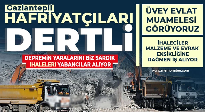 6 Şubat sabahı kriz masası kurarak 600 iş makinesi, 200 vinç ve 50 TIR ile Gaziantep şehir merkezi, İslâhiye ve Nurdağı ilçeleri ile Hatay, Adıyaman ve Kahramanmaraş’taki kurtarma ve enkaz kaldırma çalışmalarına katıldıklarını söyleyen hafriyatçılar, “6 Şubat’tan 22 Şubat’a kadar 3 hafta boyunca arama ve kurtarma başta olmak üzere, mezar kazma, yol açma gibi çalışmalarda bir kuruş talep etmeden gönüllü olarak hizmet verdik. Aradan zaman geçtikten sonra ağır ve orta hasarlı binaların yıkımı için buraya dışarıdan firmalar getirilip ihaleler verildi. Çoğunun ihalelere katılacak düzeyde belgeleri ve araçları bile yok. Bir maddeyi öne çıkararak ihaleleri birer birer yabancılara verdiler” dedi.