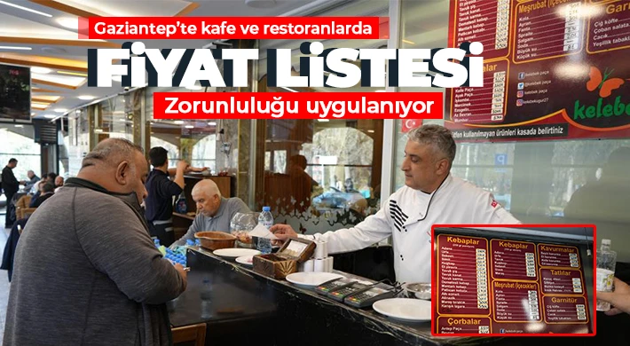 Gaziantep’te faaliyet gösteren kafe ve restoranlar, yönetmeliğe uyum sağlamak için harekete geçti. İşletmeler giriş kapılarına ve masalara fiyat listeleri asarken, bazı işletmeler QR kod menü kullanımının yanında fiyat listesi de bulunduruyor.