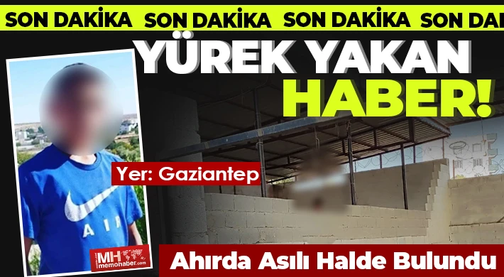 www.memohaber.com haber merkezine gelen son dakika bilgilerine göre, Gaziantep'in Nizip ilçesi Yeşilevler mahallesi Kocatepe yolu üzerinde bu akşam 19:00 sularında 16 yaşındaki İ.S. isimli çocuk hayvan ahırında çatı koluna iple asılı vaziyette ölü olarak yakınları tarafından bulundu. Olay yerine çağrılan polis, sağlık ekipleri ve olay yeri inceleme ekiplerinin yaptığı araştırma sonrasında İ.S.'nin cansız bedeni otopsi yapılmak üzere Adli Tıp Kurumu morguna kaldırdı.