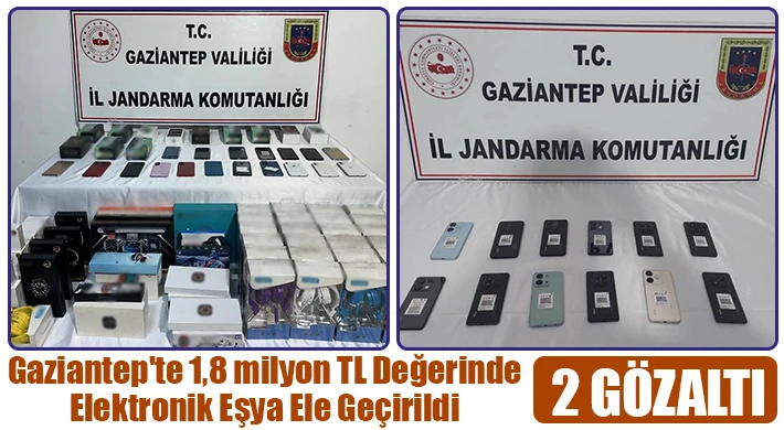 Gaziantep'te 2 şahsa ait iş yerine jandarma ekiplerince yapılan operasyonda 1 milyon 800 bin TL değerinde kaçak telefon ve elektronik eşya ele geçirildi.