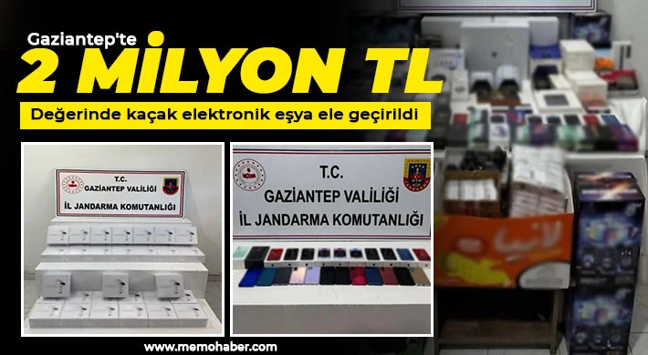 Gaziantep İl Jandarma Komutanlığı ve Cumhuriyet Başsavcılığı koordinesinde kaçakçılıkla mücadeleye yönelik operasyon yapıldı. Operasyon çerçevesinde, Şahinbey ve Şehitkâmil ilçelerinde M.A., M.B., O.O. ve H.H. isimli şahıslara ait işyerlerine baskın yapıldı. İş yerlerinde yapılan adli arama neticesinde piyasa değeri toplam 2 milyon 280 bin TL olan gümrük kaçağı 54 adet cep telefonu, 53 adet müzik çalar, 38 adet kablosuz kulaklık, 36 adet epilasyon cihazı, 15 adet oyun konsolu, 8 adet akıllı kol saati, 2 adet tablet, 550 adet şarj aleti ve 75 adet cep telefonu güvenlik filigramı ele geçirildi.