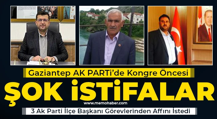 AK Parti Gaziantep'ir üç ilçesi Karkamış, Yavuzeli ve Nizip ilçe başkanları şok bir kararla görevden aflarını istediler. başkanlar ani kararını sosyal medya hesaplarından açıkladılar.