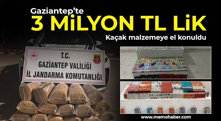 Gaziantep’te jandarma ekipleri tarafından kaçakçılıkla mücadeleye yönelik yapılan operasyonda 3 milyon TL lik kaçak malzemeye el konuldu.