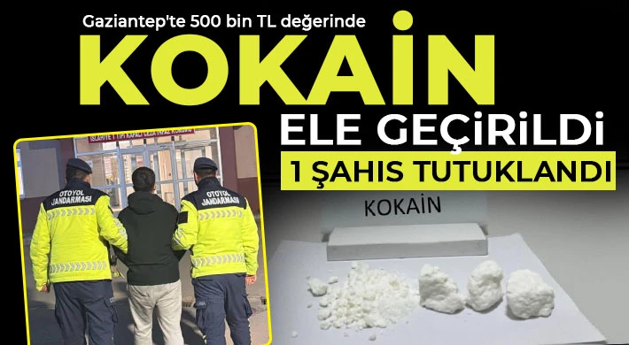 Gaziantep'te jandarma ekiplerinin durdurduğu şüpheli araçta 500 bin TL değerinde kokain ele geçirilirken olayla ilgili yakalanan 2 şahıstan 1'i tutuklandı.