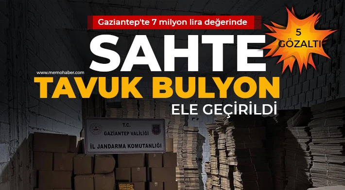 Gaziantep'te depo baskınında 7 milyon 611 bin TL değerinde 60 bin 885 adet sahte tavuk bulyon ele geçirildi, 5 şüpheli gözaltına alındı.