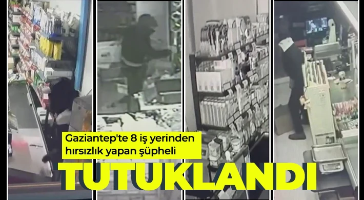 Gaziantep'te 8 farklı iş yerinde meydana gelen hırsızlık olaylarını gerçekleştirdiği tespit edilen şüpheli yakalandı. Sevk edildiği adli mercilerce tutuklanan şahsın hırsızlık anları ise güvenlik kameralarına yansıdı.