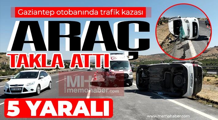 Gaziantep’te otobanda kontrolden çıkan aracın takla attığı kazada 5 kişi yaralandı.