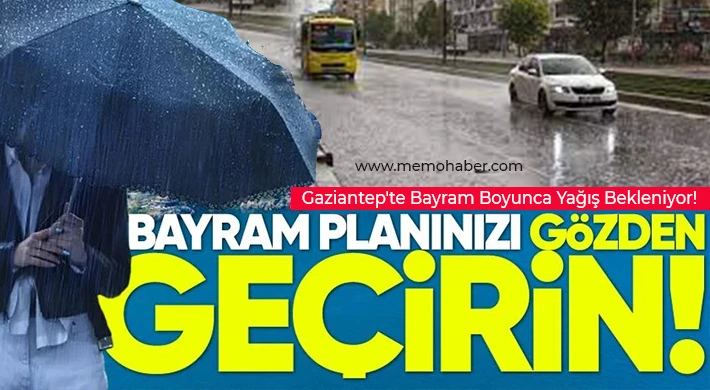 Meteoroloji Genel Müdürlüğü’nün verilerine göre, Gaziantep ve çevresinde Ramazan Bayramı süresince aralıklı sağanak ve gök gürültülü sağanak yağış bekleniyor.