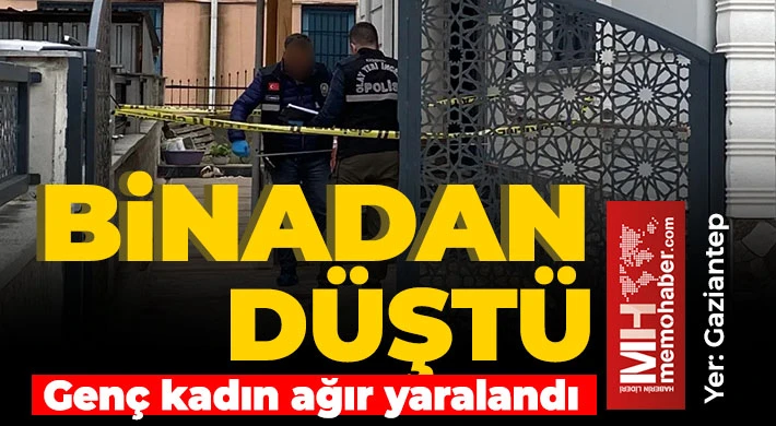 Gaziantep'te bir kadın binanın ikinci katından düşerek ağır yaralandı.