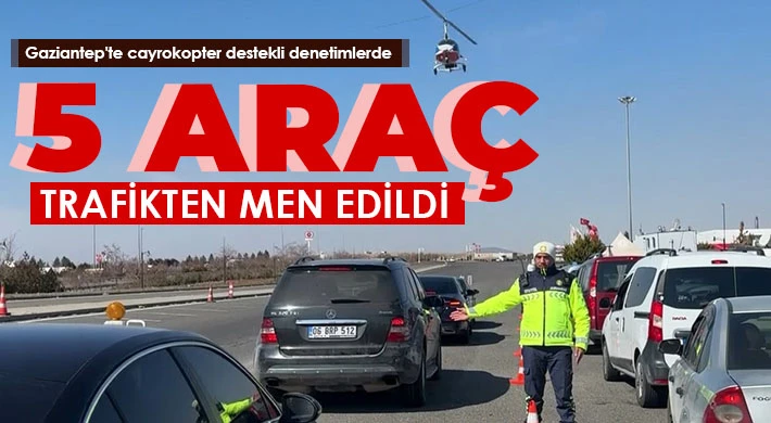 Gaziantep İl Jandarma Komutanlığına bağlı Trafik Şube Müdürlüğü ve Otoyol Jandarma Komutanlığı koordinesinde, sürücülerin trafik kurallarına uymasını sağlamak, meydana gelebilecek trafik kazalarında ölüm ve yaralanmaları en aza indirmek amacıyla dron ve cayrokopter destekli özel trafik denetimi gerçekleştirildi. Denetimlerde 383 araç sorgulanırken 5 araç trafikten men edildi. 8 araç sürücüsüne ise 48 bin 186 TL idari para cezası uygulandı.