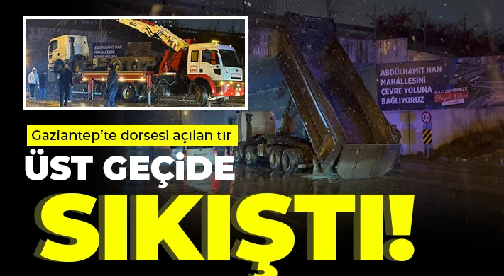Gaziantep’te seyir halindeki tırın dorsesi açılarak köprüye çarptı. Yol ulaşıma kapandı. Kaza nedeniyle şans eseri yaralanan olmazken tırda maddi hasar meydana geldi.