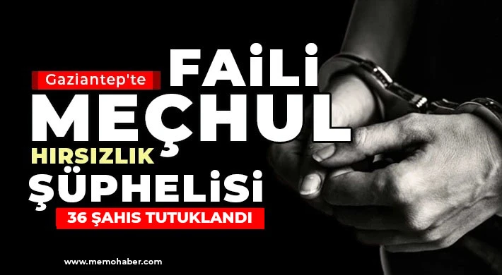 Gaziantep'te jandarma ekiplerinin 29 faili meçhul hırsızlık olayına yönelik operasyonlarında 55 şüpheli şahıs yakalandı. Yakalanan şahıslardan 36'sı tutuklanırken 19'u hakkında adli kontrol kararı verildi.