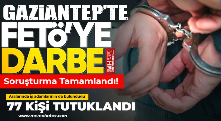 Gaziantep merkezli 47 ilde düzenlenen FETÖ operasyonunda 77 kişi tutuklandı, 125 şüpheli adli kontrol şartıyla serbest bırakıldı.