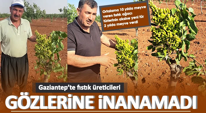 Gaziantep’te normal şartlarda ortalama 10 yıl yetişme sürecinden sonra hasat vermesiyle bilinen Antep fıstığı ağacı ikinci senesinde fıstık vermesiyle görenleri hayrete düşürdü.
