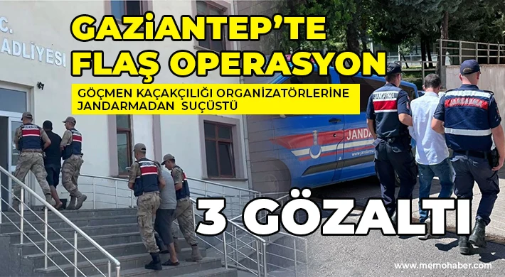 Gaziantep İl Jandarma Komutanlığınca, göçmen kaçakçılığı organizatörlerine yönelik Cumhuriyet Başsavcılığı koordinesinde icra edilen operasyonlar kapsamında, Ülkemize yasadışı yollardan geçen düzensiz göçmenlerin araçla Gaziantep ilinden başka bir İle götürüldüğünün ihbarının alınması üzerine Şahinbey ve Nurdağı ilçesinde bahse konu araçlar durdurularak (3) göçmen kaçakçısı organizatör ve yabancı uyruklu şahıslar yakalanarak gözaltına alınmıştır.