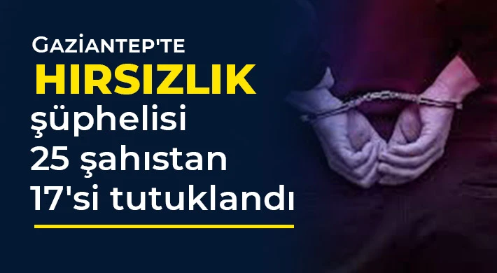 Gaziantep'te jandarma ekiplerinin son bir ayda yaptığı operasyonlarda yakalanan hırsızlık şüphelisi 25 şüpheliden 17'si tutuklandı.