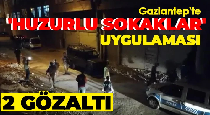 Gaziantep Emniyet Müdürlüğü ekipleri, kentte huzur ve güven ortamının devamının sağlanması, gürültü yaparak çevreye rahatsızlık veren araç ve şahısların men edilmesi, suç işlenmesinin önlenmesi ve meydana gelen suçların faillerinin yakalanmasına yönelik 'huzurlu sokaklar' uygulaması yaptı. Türkiye genelinde eş zamanlı olarak olarak yapılan uygulamanın Gaziantep ayağında metruk binalar ve 330 araç kontrol edildi. Uygulama ile bin 62 şahıs sorgulanırken çeşitli suçlardan aranan 2 şahıs yakalanarak adli mercilere teslim edildi. Yapılan aramalarda ise bir miktar uyuşturucu madde ele geçirildi.