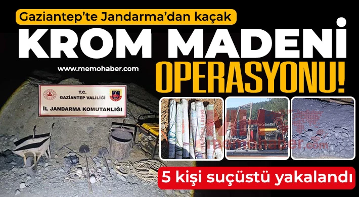 Gaziantep'in Nurdağı ilçesinde devlet arazisinde kaçak krom madeni açarak kazı yapan 5 şahıs jandarma ekiplerince suçüstü yakalandı.