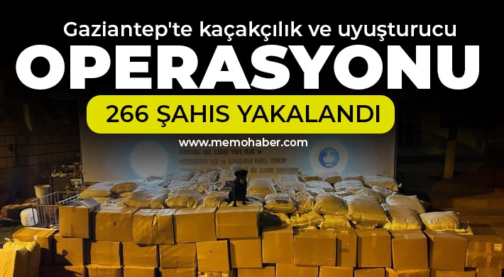 Gaziantep İl Jandarma Komutanlığı ve Cumhuriyet Başsavcılığı koordinesinde kaçakçılık olayları ve uyuşturucuyla mücadele kapsamında Eylül ayı içerisinde icra edilen faaliyetlerde 259 olaya müdahale edildi. Olaylara karıştığı tespit edilen 266 şüpheli yakalandı. Yakalanan şüpheli şahıslar hakkında yasal işlem başlatıldı.