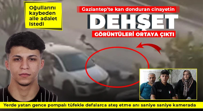 Gaziantep'te 19 yaşındaki gencin pompalı tüfekle öldürüldüğü anlara ait dehşet görüntüler ortaya çıktı. Yerde yatan gence pompalı tüfekle defalarca ateş edilerek öldürme anı saniye saniye kameraya yansırken oğullarını kaybeden aile gözyaşı dökerek katil zanlılarının bulunmasını ve hak ettiği cezayı almasını istedi.