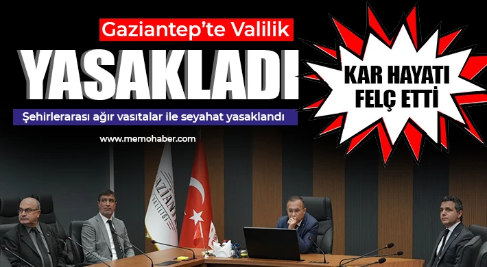 Gaziantep Valiliği yoğun kar yağışı nedeniyle Gaziantep'in çevre illerle olan bağlantılarının açık kalması için otoban ve devlet yollarında ağır vasıta araçların seyahatine ikinci bir emre kadar yasak getirdi.