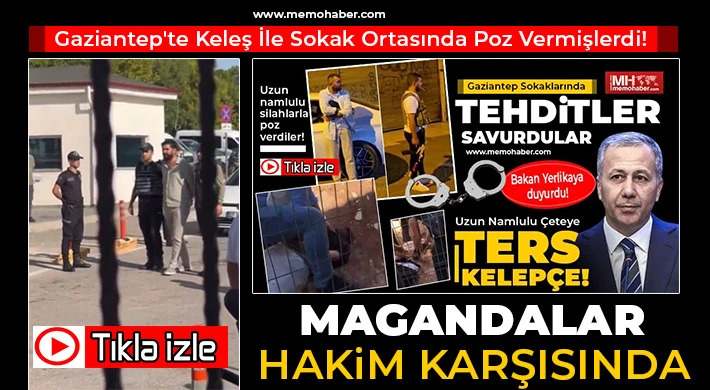 Gaziantep'te sokakta uzun namlulu silahlarla poz vererek hasımlarını tehdit ettikleri videoyu sosyal medyada paylaşınca düzenlenen operasyonla yakalanan şehir magandaları adliyeye sevk edildi.