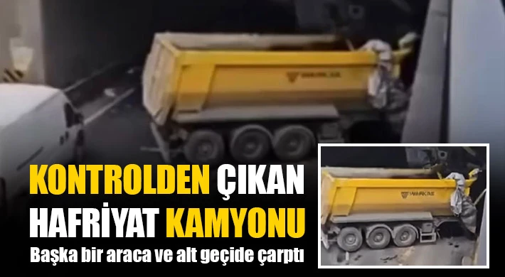 Gaziantep'te kontrolden çıkan hafriyat kamyonu, panelvan tipi araç ve alt geçit duvarına çarparak durdu.