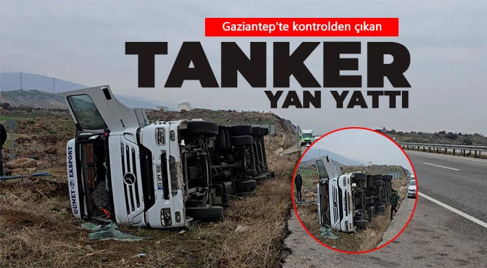 Gaziantep'te seyir halindeki bitkisel yağ dolu tanker sürücüsü yolda hakimiyetini kaybedip devrildi. Devrilen tankerdeki yağın bir kısmı ziyan oldu.