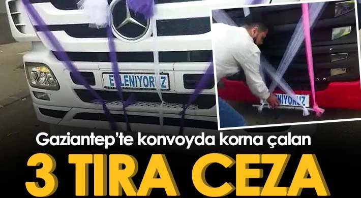 Gaziantep’te düğün konvoyunda korna çalarak çevreyi rahatsız eden ve trafiği tehlikeye düşüren 3 tırın sürücüsüne ceza uygulandı.