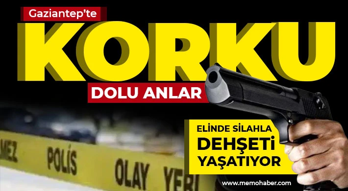 Gaziantep’te bir şahıs elinde tabanca ile korku dolu anlar yaşatıyor. Silahlı saldırgan emniyet güçleri tarafından ikna edilmeye çalışılıyor.