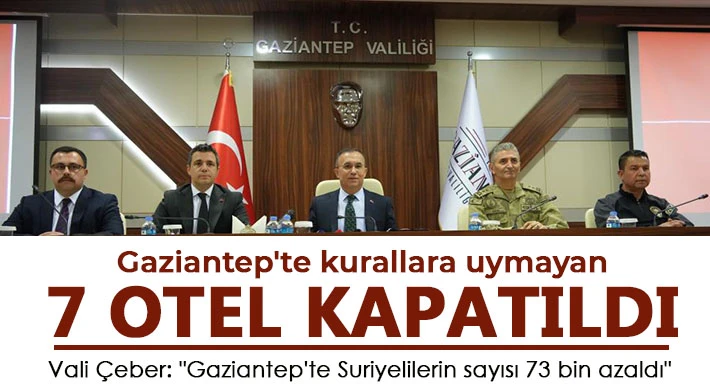 Gaziantep Valisi Kemal Çeber, yapılan denetimlerde 7 otelin kapatıldığını belirtirken, kentte Suriyelilerin sayısında 73 bine yakın bir azalmanın olduğunu söyledi.