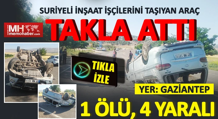 Gaziantep’in Yavuzeli ilçesinde lastiği patlayan araç refüje çarparak takla attı. Araçta bulunan ve inşaat işçisi olduğu öğrenilen 5 kişiden 1’i ölürken 4 kişi ise yaralandı.