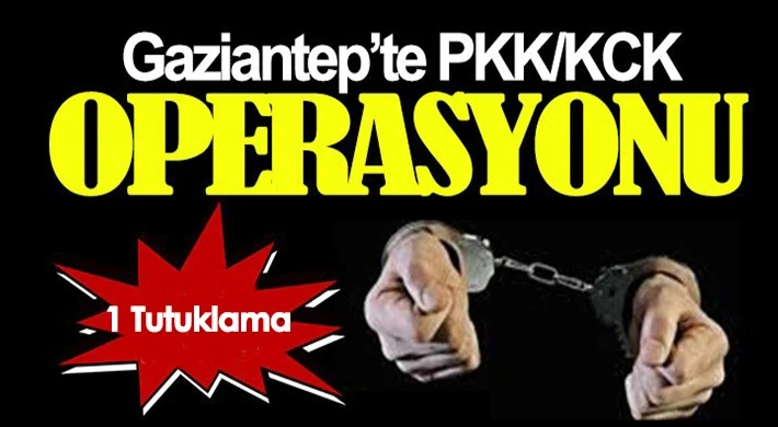 Gaziantep Emniyet Müdürlüğü Terörle Mücadele Şube Müdürlüğü ekipleri, PKK/KCK-PYD/YPG silahlı terör örgütüne yönelik operasyon yaptı. Cumhuriyet Başsavcılığı koordinesinde yapılan operasyonda, PKK/KCK-PYD/YPG silahlı terör örgütü içerisinde silahlı olarak faaliyet gösterdiği tespit edilen A.A. tutuklanırken, B.A. isimli şüpheli hakkında adli kontrol kararı verildiği bildirildi.