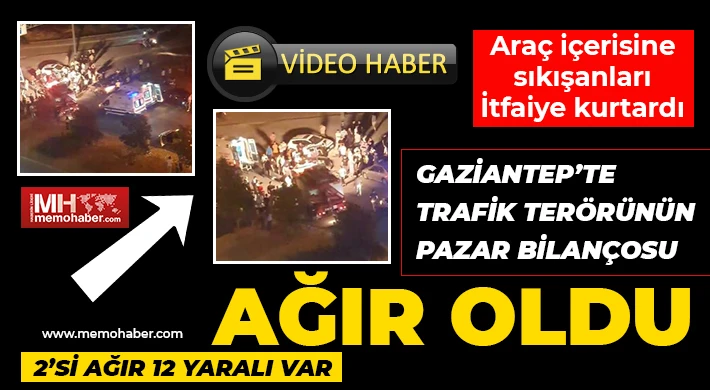 Gaziantep’te trafik terörünün pazar bilançosu çok ağır oldu. 2’si ağır 12 yaralı var. Araç içersine sıkışanları itfaiye ekipleri kurtardı.