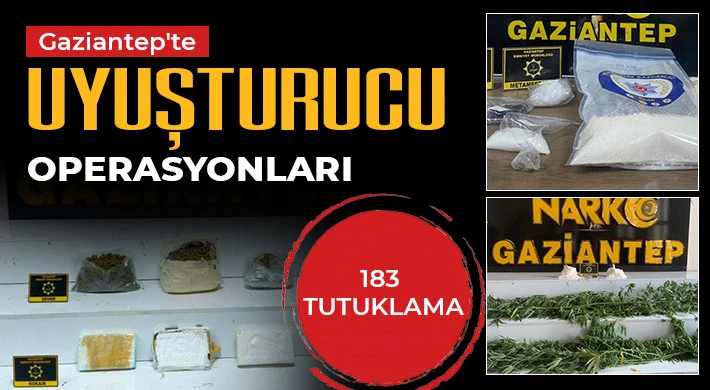 Gaziantep'te Eylül ayında gerçekleştirilen narkotik operasyonlarında 183 kişi tutuklandı. Operasyonlarda çok sayıda uyuşturucu madde ele geçirildi.