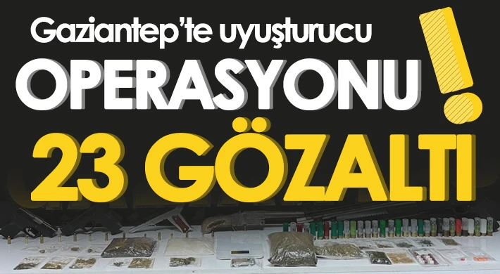 Gaziantep’te yapılan uyuşturucu operasyonunda 23 şüpheli şahıs gözaltına alınırken, çok miktarda uyuşturucu madde ele geçirildi.