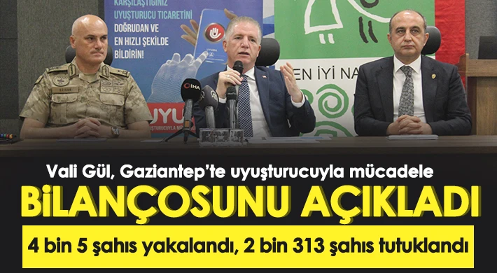 Gaziantep Valisi Davut Gül, kentte son bir buçuk yılda yapılan narkotik operasyonlarının bilançosunu açıkladı. Vali Gül, yapılan operasyonlarda gözaltına alınan 4 bin 5 şahıstan 2 bin 313’ünün tutuklandığını söyledi.
