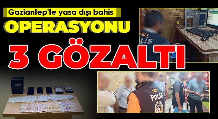 Gaziantep’te ruhsatsız faaliyet gösteren yasa dışı bahis operasyonunda 3 kişi gözaltına alındı.