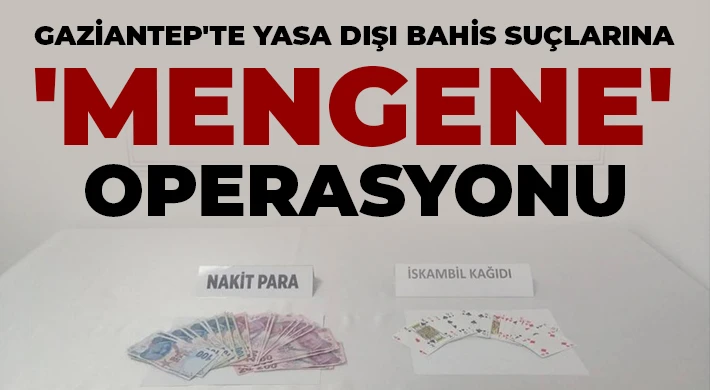 Kumar, tombala, oyun makineleri ve yasa dışı bahis suçlarına yönelik yurt genelinde düzenlenen “mengene” operasyonları kapsamında Gaziantep'in İslahiye ilçesinde A.E. isimli şahsın işyerine operasyon düzenlendi. Gaziantep İl Jandarma Komutanlığı ekiplerince, kumar oynatıldığı tespit edilen iş yerine düzenlenen operasyonda kumar oynayan 6 kişi suçüstü yakalandı. Kumar oynayan 6 şahsa idari para cezası uygulanırken işletme sahibi A.E. hakkında kumar oynamak için yer ve imkân sağlamak suçundan adli ve idari soruşturma başlatıldı.