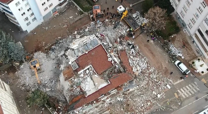 Kahramanmaraş’ta meydana gelen 7.7 ile 7.6 büyüklüğündeki depremlerden en çok etkilenen illerden biri olan Gaziantep’te çok sayıda bina yıkıldı. Yıkılan binalar havadan görüntülendi.
