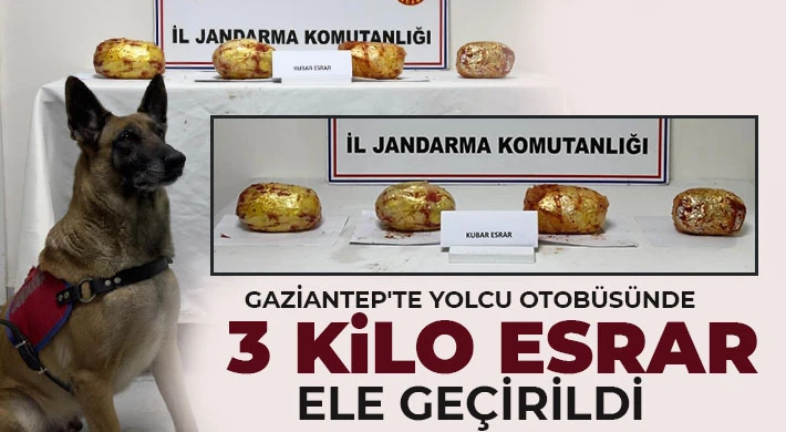 Gaziantep İl Jandarma Komutanlığı ve Cumhuriyet Başsavcılığı koordinesinde uyuşturucu ve uyarıcı madde ile mücadeleye yönelik çalışma yapıldı. Çalışmalar çerçevesinde Nurdağı ilçesinde gerçekleştirilen yol kontrol uygulaması esnasında yolcu otobüsü durduruldu. Dedektör köpeğin tepki yolcu otobüsünde yapılan aramalarda 3 kilo 250 esrar ele geçirildi. Olayla ilgili 1 şüpheli şahıs gözaltına alındı.