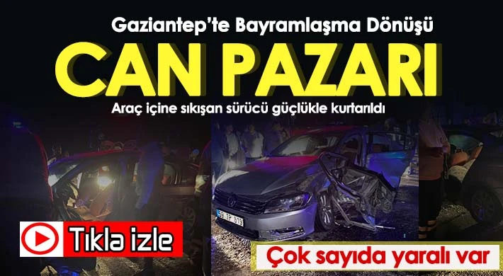 Gaziantep'te bayramlaşma dönüşü 4 otomobilin karıştığı zincirleme trafik kazasında can pazarı yaşandı çok sayıda yaralı var.