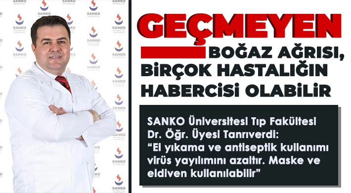 SANKO Üniversitesi Tıp Fakültesi Enfeksiyon Hastalıkları ve Klinik Mikrobiyoloji Ana Bilim Dalı Başkanı Dr. Öğr. Üyesi Mustafa Tanrıverdi, geçmeyen boğaz ağrılarının birçok hastalığın habercisi olabileceğini söyledi.