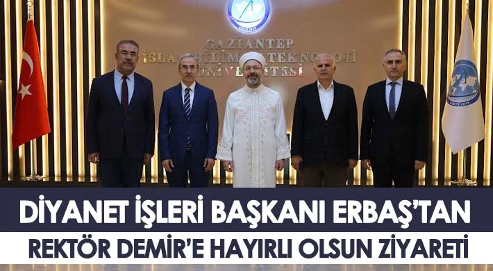 Diyanet İşleri Başkanı Prof. Dr. Ali Erbaş, Gaziantep İslam Bilim ve Teknoloji Üniversite (GİBTÜ) Rektörlüğü’ne atanan Prof. Dr. Şehmus Demir’e hayırlı olsun ziyaretinde bulundu. Rektör Demir’e görevinde başarılar dileyen Diyanet İşleri Başkanı Erbaş, GİBTÜ’nün çıtayı yükselterek diğer üniversitelere örnek olacağına inandığını vurguladı. Erbaş, kendisinin de daha önceleri rektörlük görevinde bulunduğunu, tecrübelerini paylaşmaya hazır olduğunun altını çizdi.