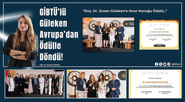 Uluslararasılaşma hedefi doğrultusunda gerçekleştirdiği uygulamaları sürdürülebilir kılmak amacıyla tüm akademik personelin farkındalığını yükseltmeye çalışan GİBTÜ’de akademisyenler de yapılan çalışmaların meyvelerini almaya başladı. Son olarak GİBTÜ Tıp Fakültesi Fizyoloji Anabilim Dalı Başkanı Doç. Dr. Zozan Güleken, Klinik Dermatoloji Kongresi'nde, Polonya Dermatoloji Topluluğu Prof. Leslaw Grzegorczyk Onur Konuğu Ödülü’nü alarak yurda döndü.